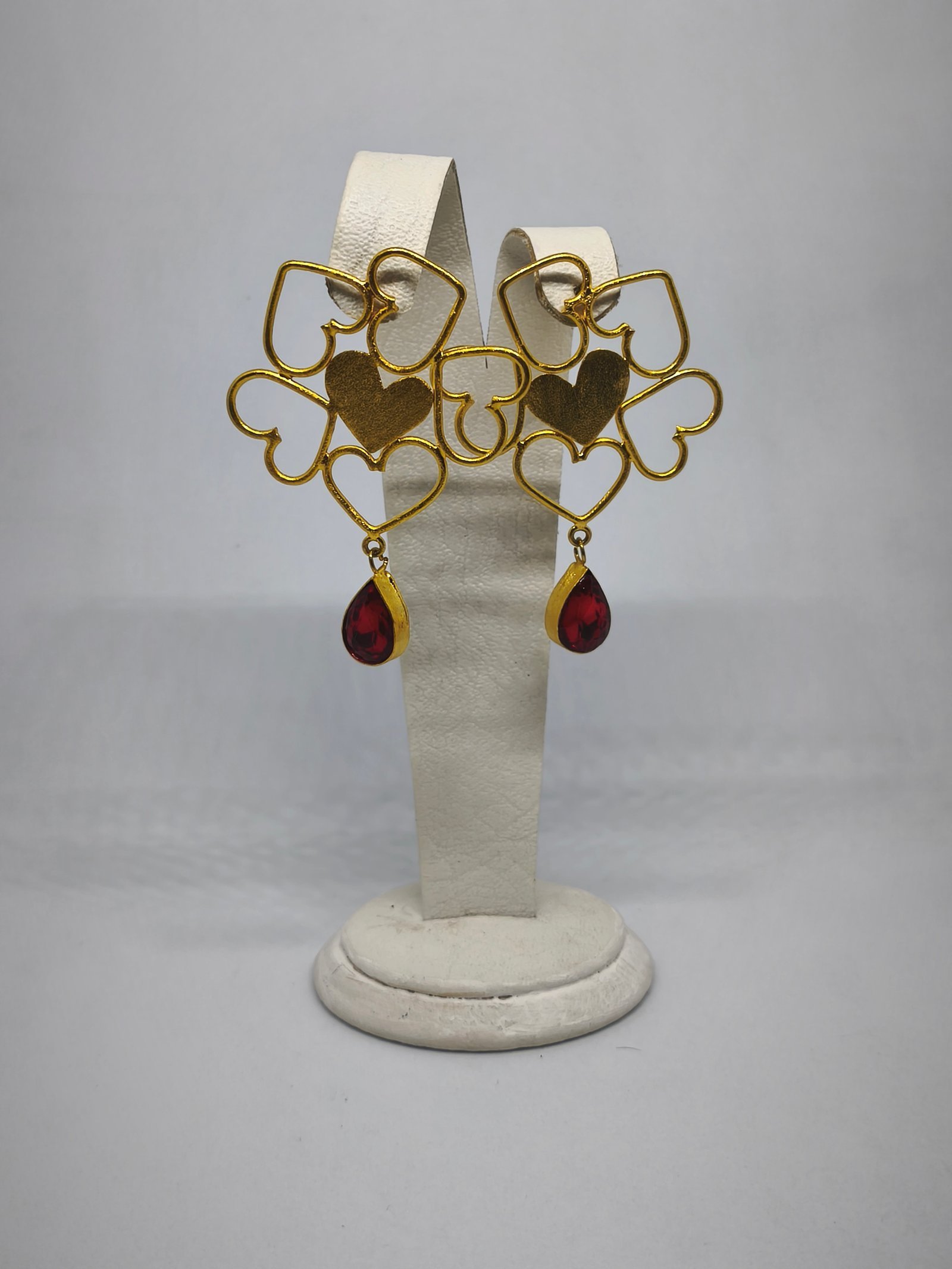 ARETES CORAZON PIEDRA ROJA cantidad